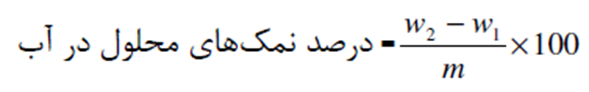 نمک های محلول در آب را بر حسب درصد وزن آزمونه خشک شده با دقت 01/0 درصد، از رابطه زیر محاسبه می شود :