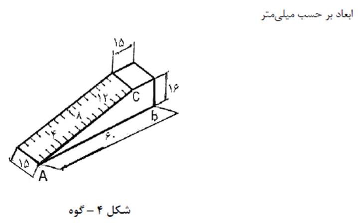 6-1-3-2-2 تعیین تحدب ابتدا باید سطح محدب آجر را روی سطح شیشه ای صاف قرار داد، سپس فاصله بین چهار گوشه آجر و سطح صاف را با گوه اندازه گیری و میانگین اندازه آنها را محاسبه کرد.